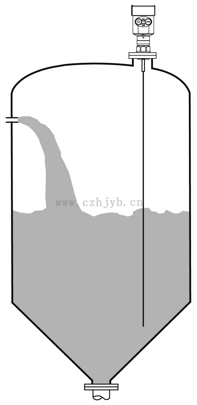 在整個量程范圍內確定纜或棒不要接觸到內部障礙物,因此安裝時應盡可能避開罐內設施,如:人梯、限位開關、加熱設備、支架等。另外需注意纜或棒不得與加料料流相交。