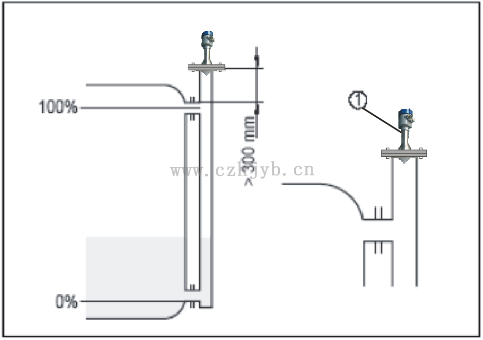 Ø 當罐中有障礙物影響測量時,要加裝反射板才能正常測量。
