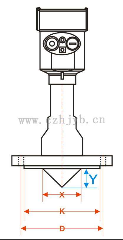 注:使用雷達物位計時,務必保證最高料位不能進入測量盲區(圖中D所示區域)。